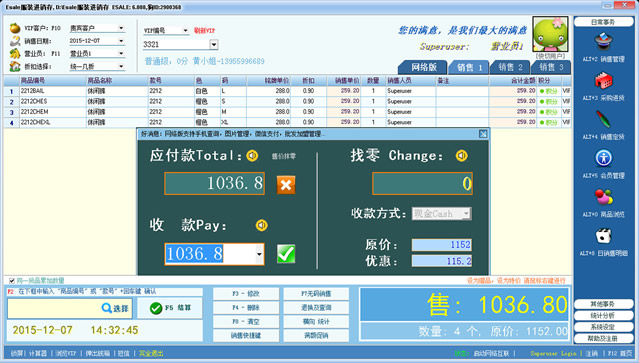 Esale服裝銷售管理軟件界面設計簡潔、直觀,操作簡便。"傻瓜式"操作功能設計,讓您輕松掌握收銀流程。