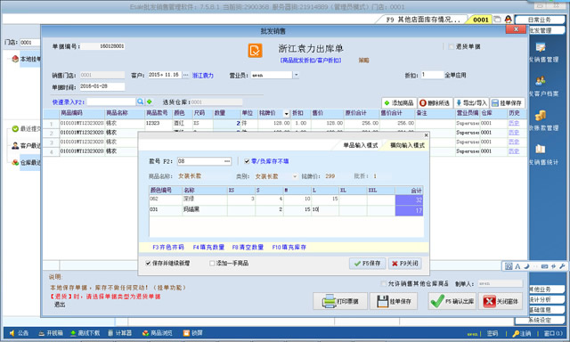 服裝批發(fā)軟件所有單據(jù)錄入商品都是按橫向尺碼進行,體現(xiàn)服裝批發(fā)特色。