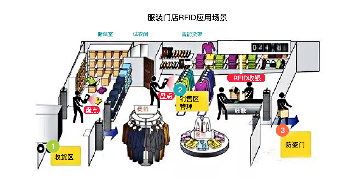 門店可通過RFID系統(tǒng)完成商品的調(diào)撥、盤點(diǎn)、找貨、收銀等操作。